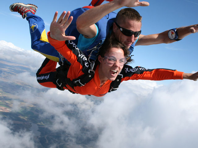 Para lembrar esta excelente experiência, pode adicionar o serviço de vídeo, fotos ou ambos. O seu salto será acompanhado por um cameraflyer, que saltará consigo e com o seu instrutor e captará toda esta fantástica experiência em queda livre. Lembre-se a sorrir nesta grande aventura!